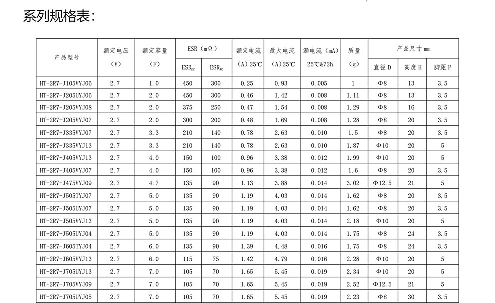 超級(jí)電容器 HT系列